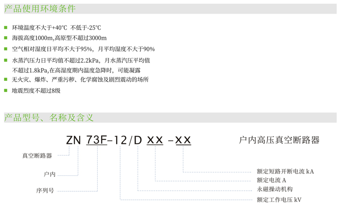 ZN73F-12型真空斷路器適用于以空氣為絕緣的戶內(nèi)式開關(guān)系統(tǒng)中。在正常的使用條件及斷路器的技術(shù)參數(shù)范圍內(nèi),ZN73F-12型真空斷
